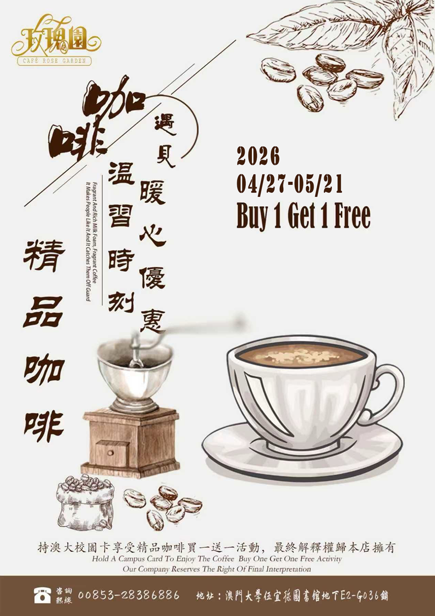 | E2 | 玫瑰園 | 正價咖啡買一送一 | |