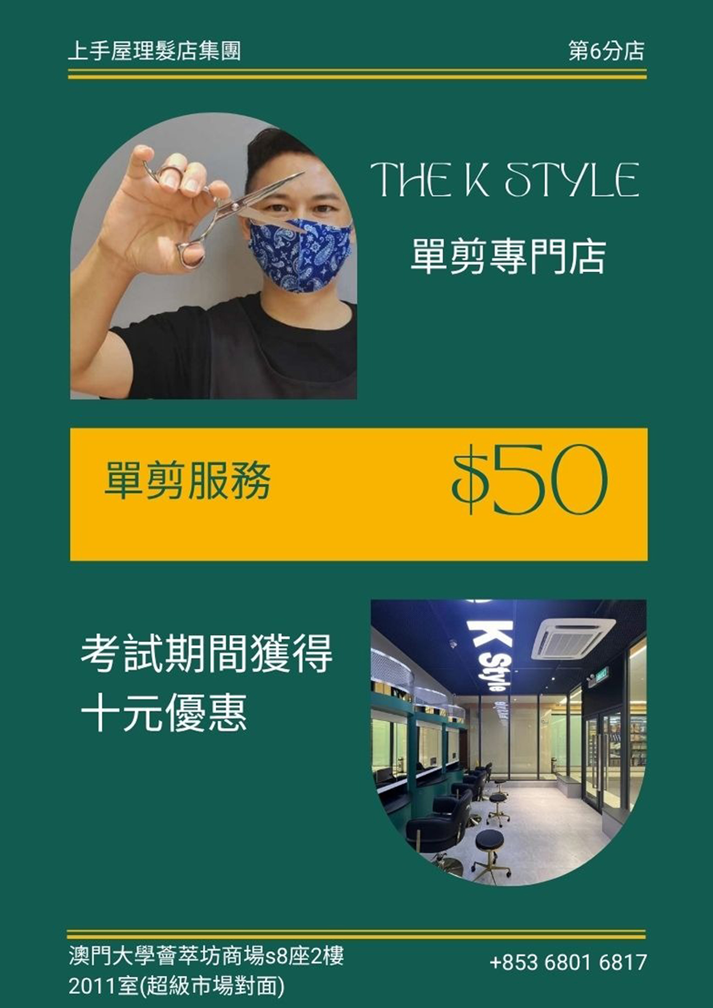 | S8 | 上手屋 | 理髮立減 MOP10 | |