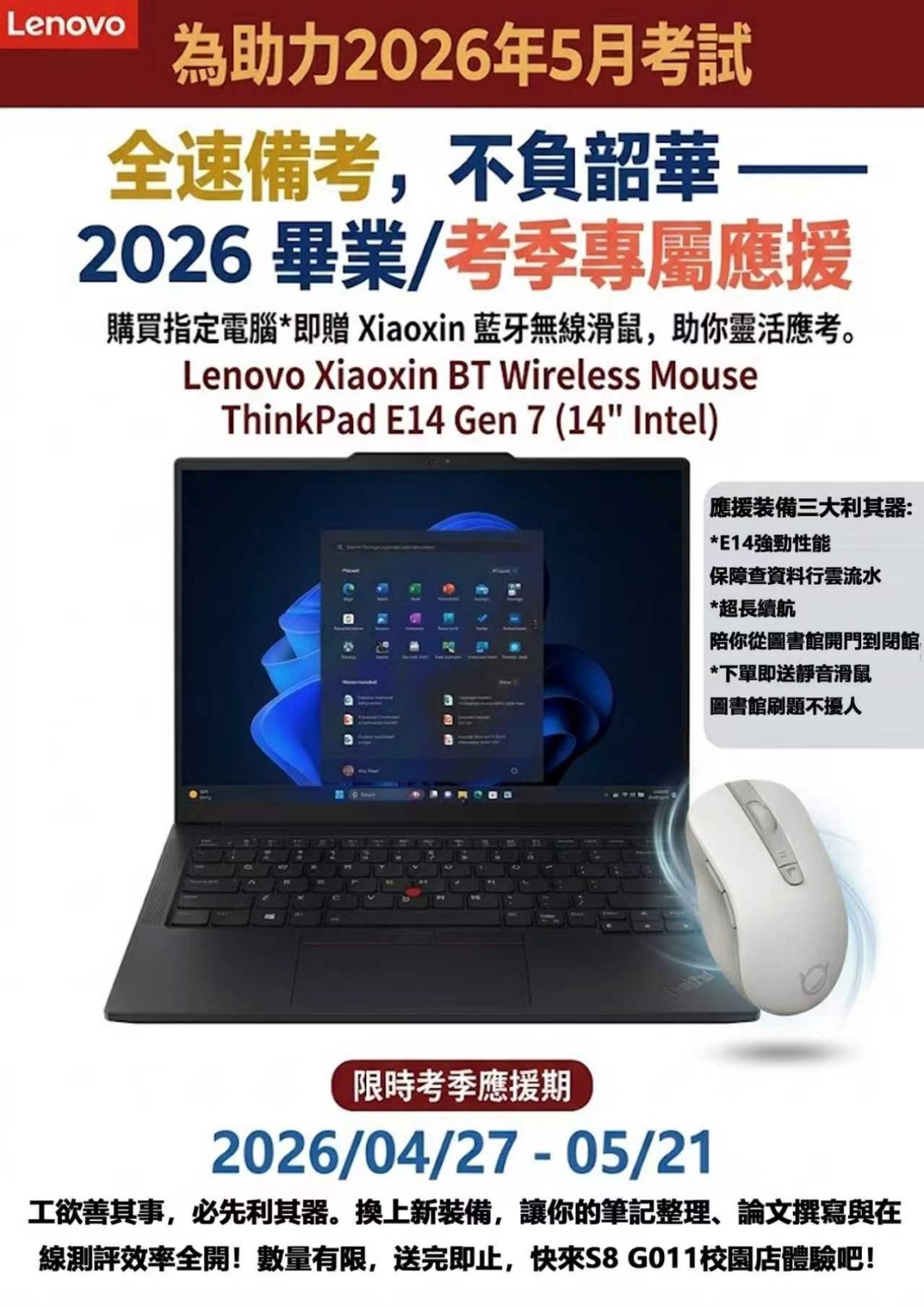 | S8 | 卓越科技 | 購買指定電腦贈送聯想小新滑鼠一個 | |