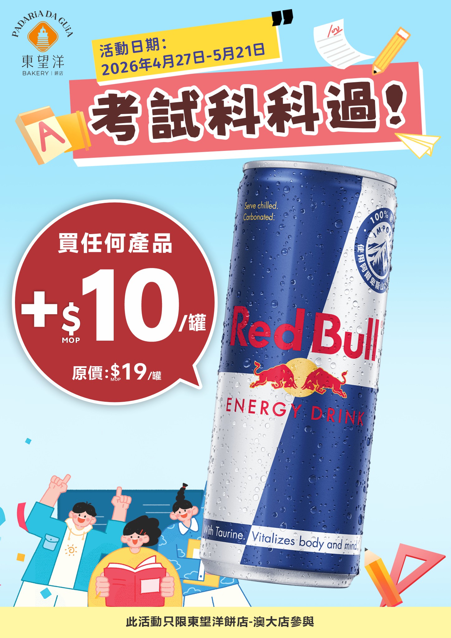 | S8 | 東望洋餅店 | 購買任何產品加 MOP10 可換購紅牛一罐 | |