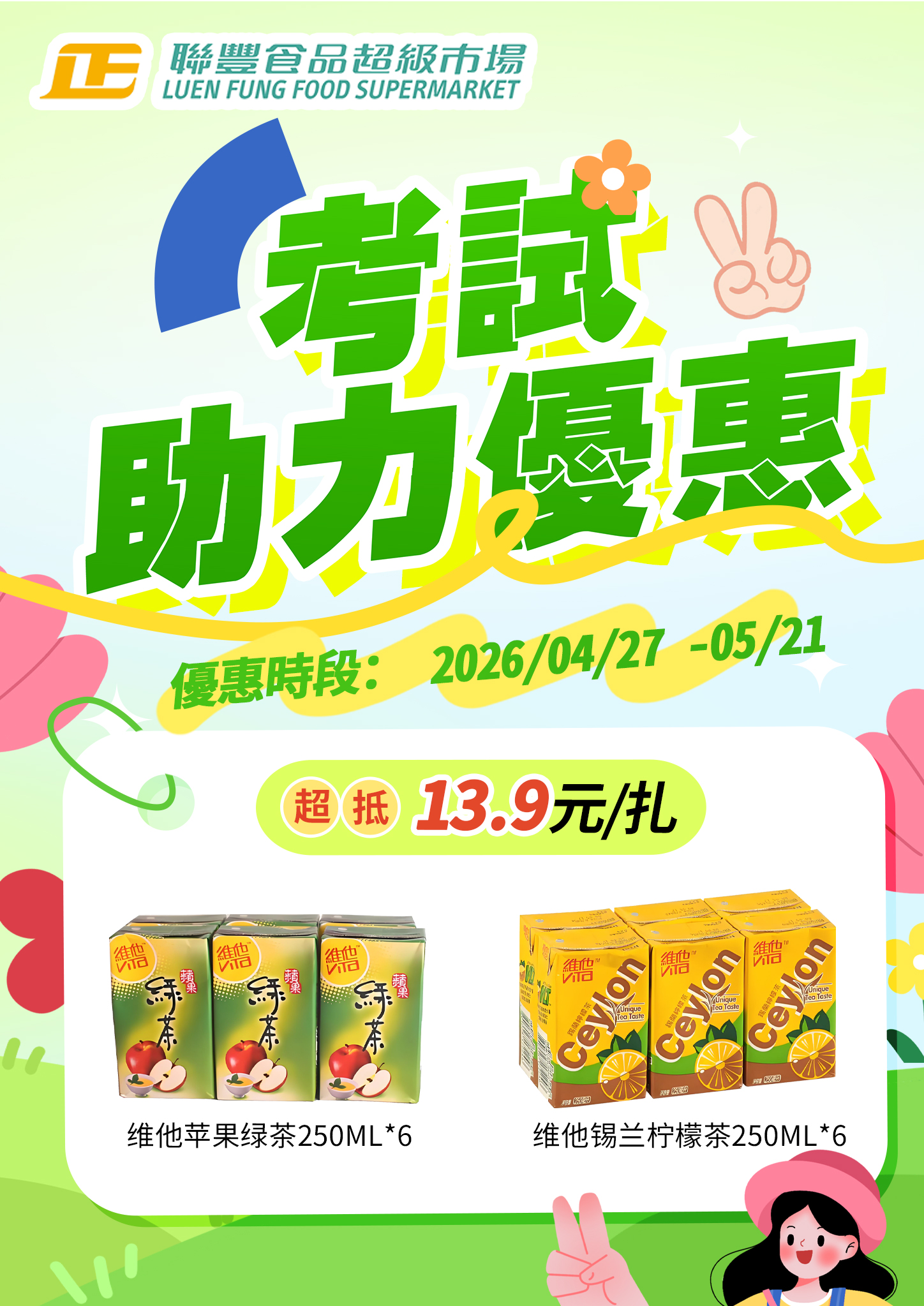 | S8 | 聯豐超級市場 | 指定維他飲品優惠價 MOP13.9 (6盒裝) | |