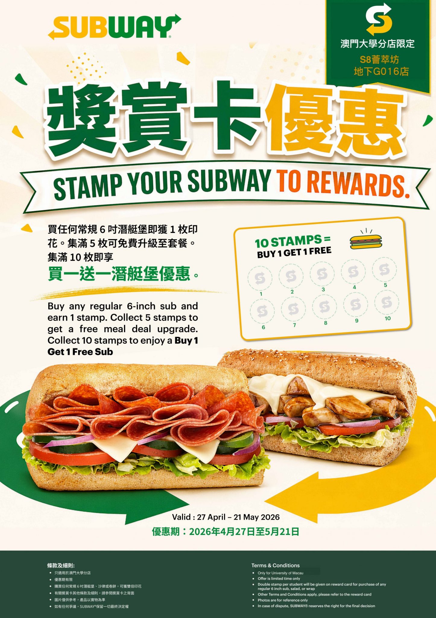 | S8 | 賽百味 | 積分奬賞卡換領禮品或優惠 | |