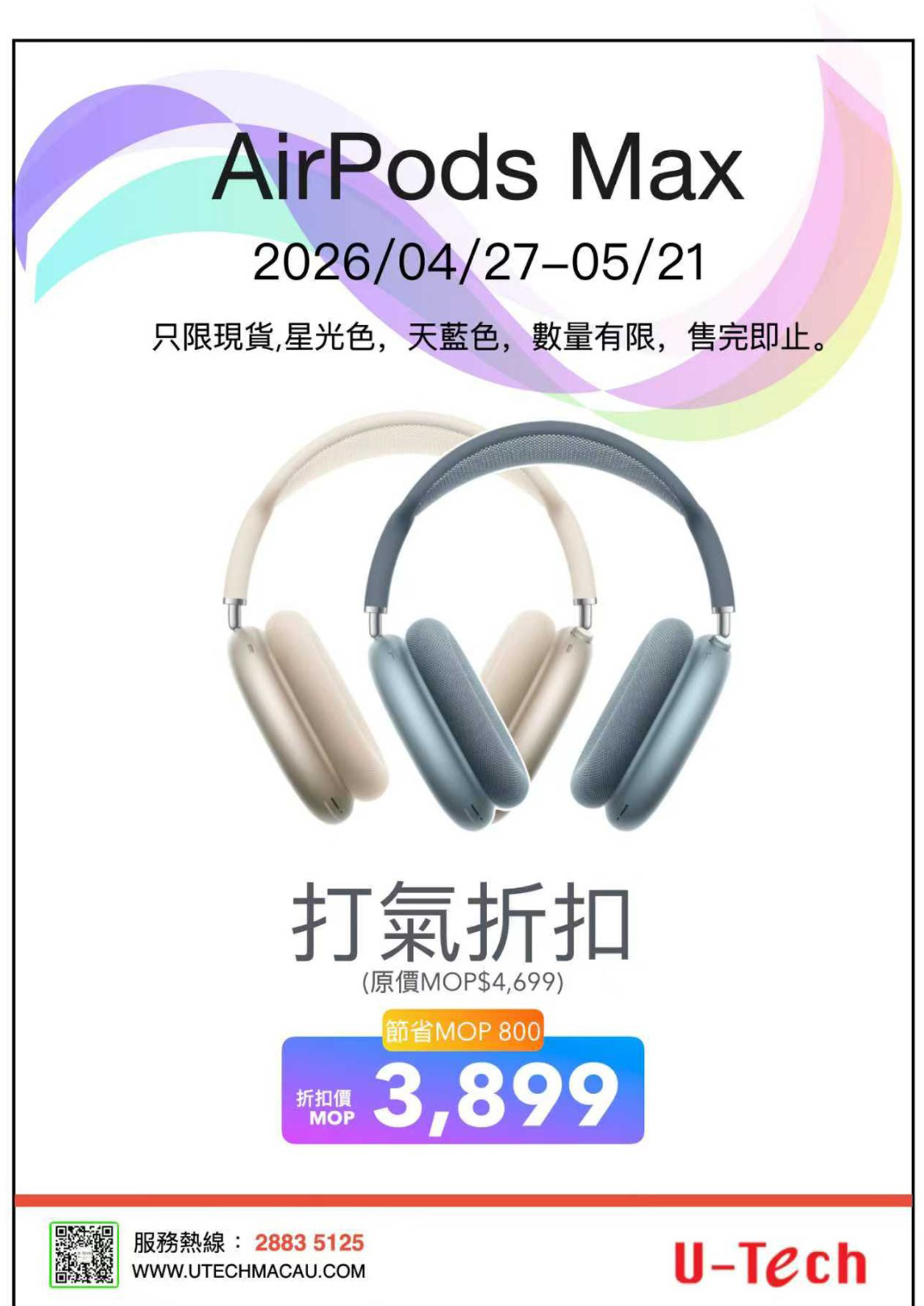 | S8 | U-Tech | AirPods Max 優惠價 MOP3,899 | |